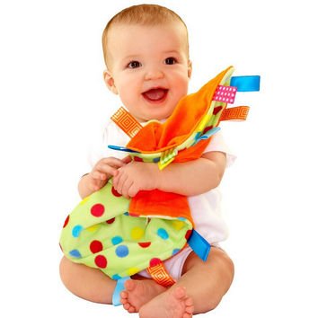 Classic security item soothes and provides sensory stimulation; aiding fine motor skill development while calming baby;20 bright; engaging and tactile tags around the border offers little ones hours of interactive entertainment and comfort;Perfect for home and on-the-go;Machine washable