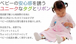 ![]() | TAGGIES(C)は、自分の子どもがおもちゃよりもタグに興味を持っているのを見たアメリカのママが、お気に入りのブランケットに沢山のリボンをタグのように縫い付けたことから始まった。 彼女のタグ付きブランケットは、そのユニークな見た目と赤ちゃんを落ち着かせる効果から、あっという間にママ達の間で話題になりアメリカをはじめ世界各国で絶大な人気を誇っている。また、安心安全な素材と赤ちゃんの感性を育むデザインは、数々の賞を受賞。品質が高く評価されている。 |