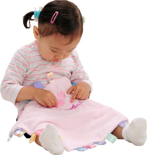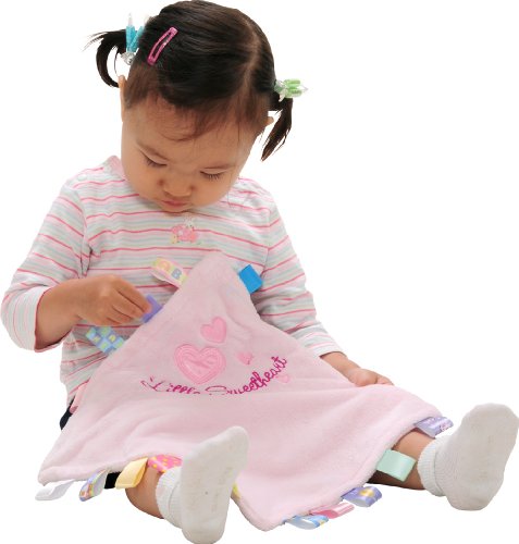高品質で触り心地抜群の生地と、周りにたくさん付いたカラフルなタグがベビーの気持ちの落ち着きを手助け。外出先でも、お家でも、ブランケットとしてオモチャとしてベビーの成長を見守る。