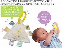 ![]() | TAGGIESの特徴&効果 ●高品質で安全な素材を使った触り心地抜群の生地。 ●細部にまでこだわった特別なデザインのリボンとタグの組み合わせ。 ●赤ちゃんの視覚、触覚を刺激することで感性を健やかに育てる。 ●赤ちゃんの情緒を安定させ、情緒的健康を育む。 |