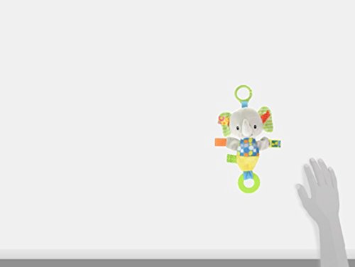 Crinkle elephant squeaker toy and teether is 8-inches; includes flexible loop for attaching to stroller and crib;Features super soft fabric, embroidered face details, and chewable teether;Adorned with interactive and soothing tags babies love to explore; crinkle paper in limbs adds to the sensory fun;Great for little hands; give the body a good squeeze and elephant lets out a squeak that'll make baby smile;Taggies toys, blankets and baby mats make great coordinating baby shower gifts