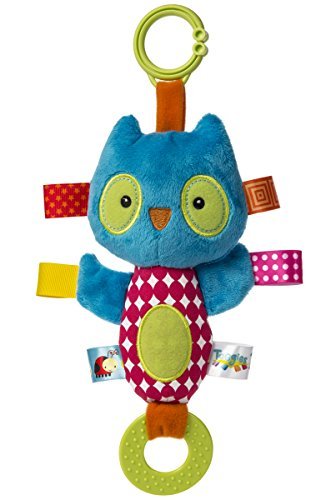 Crinkle owl squeaker toy and teether is 8-inches; includes flexible loop for attaching to stroller and crib;Features super soft fabric, embroidered face details, and chewable teether;Adorned with interactive and soothing tags babies love to explore; crinkle paper in limbs adds to the sensory fun;Great for little hands; give the body a good squeeze and owl lets out a squeak that'll make baby smile;Taggies toys, blankets and baby mats make great coordinating baby shower gifts