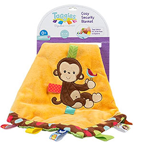 Made with ultra-soft microfiber top and silky soft satin underside the taggies dazzle dots monkey cosy blanket is the perfect blankie for your little one.Taggies are adorned with patented looped ribbon tags that babies love to explore and rub.Brand: Mary Meyer Ultra-soft microfiber fabric top and silky soft satin underside Taggies are adorned with patented looped ribbon tags Material: Polyester fabric/satin Care instructions: Machine washable Materials: 100-percent polyester Dimensions: 41cm long x 41cm wide x 1.8cm high* Dazzle dots monkey cosy blanket measures 41cm x 41cm