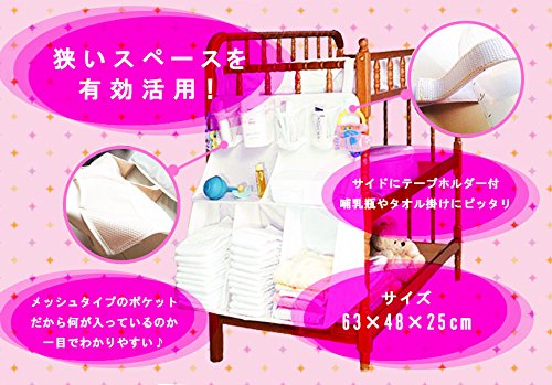 狭いスペースを有効活用! ベビーベッドに取り付けれる収納ポケット! ベッドの周辺に赤ちゃん用品を効率よく収納できます。 サイドにテープホルダー付き。 哺乳瓶やタオル掛けにピッタリ メッシュタイプのポケットだから何が入っているのか ひと目でわかりやすい♪ 商品スペック サイズ:64×48×25cm 生産国:中国製