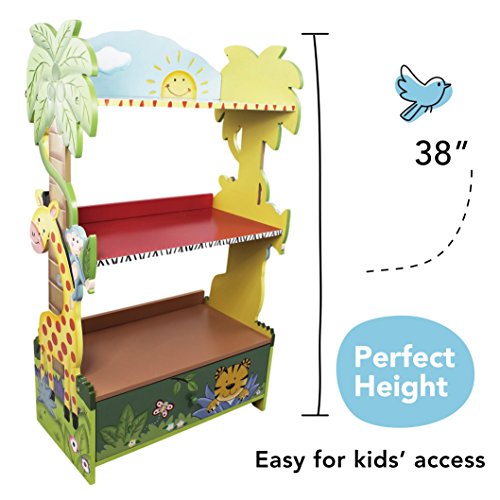 Hand painted and hand carved design with durable wooden construction and non-toxic paint by Teamson Design Corp., Helps develop organization skills, 3 full shelves and extra small cabinet for plenty of storage, Packaged with step-by-step assembly instruction., Perfect for ages 3 and up, Carefully Packaged Unique Hand Painted Hand Carved Design by Skilled Craftsman, Easy Assembly; Best Gift for Kids Birthday; Christmas Gift; Baby Shower & many happy moments, Safe, Sturdy & Wood with Lead Free Paints - CPSIA Compliant, Suitable for Kids Bedroom and Playroom to develop Imagination and Creativity with Whimsical Pieces