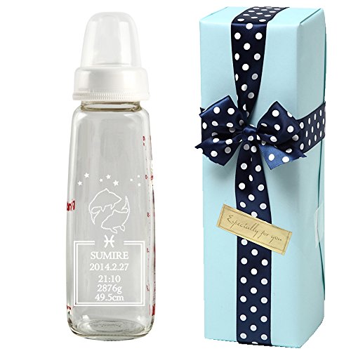 TEATSIGHT お名前入り哺乳びん 名入れ彫刻 12星座 うお座 240ml ガラス製 (ブルーラッピング)