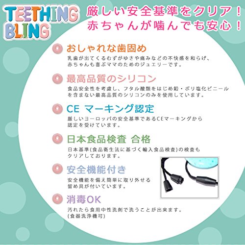 乳歯が出てくるむずがゆさや痛みなどの不快感を和らげ、赤ちゃんも喜ぶママのためのジュエリーです♪ソフトでしなやかな最高品質のシリコン製で厳しい安全基準もクリアしているので安心してお子様の歯固めとしてご使用いただけます!