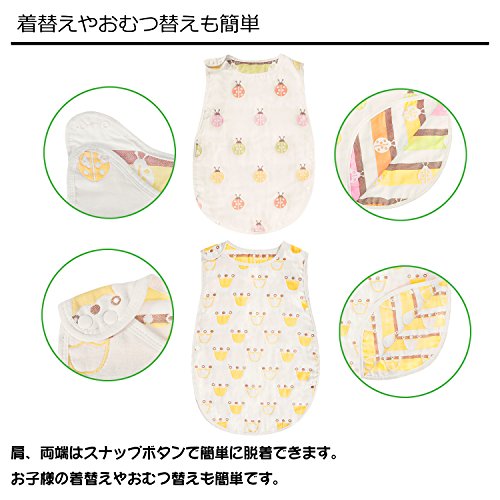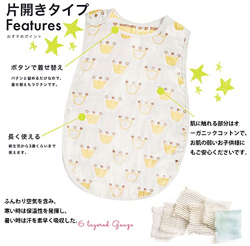 バンビノ ベビー 8重 ガーゼ スリーパー オーガニックコットン 赤ちゃん 寝冷え防止 6重より柔らか 出産祝い ベビーサイズ (新生児~3歳頃) (象さん)