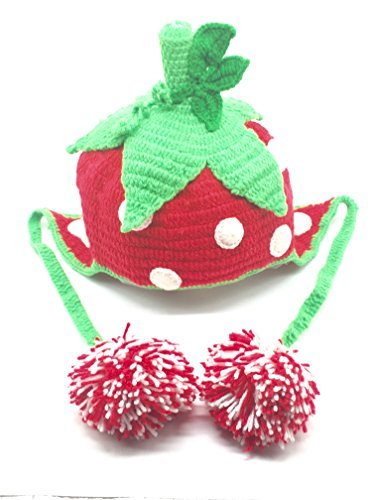 BETONG SAKAI- Baby Boys Girls Infant Fruit Strawberry Knit Crochet Hoot Hat Cap Ear Flap Warm