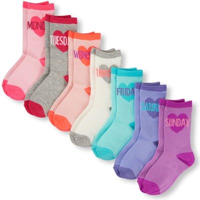 THE CHILDREN'S PLACE(ザ・チルドレンズプレイス) グリッター ハートデイズオブザウィーク クルー ソックス 7-パック ネオンベリー 小物くつ下・タイツ 20~21cm【並行輸入】