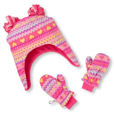 THE CHILDREN'S PLACE(ザ・チルドレンズプレイス) ネオンハートフェアアイルプリントポンポンハット&ミトンセット 小物 12~24ヶ月【並行輸入】