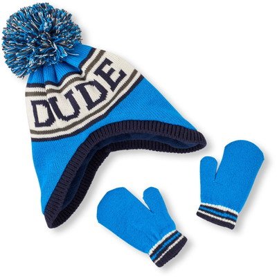 THE CHILDREN'S PLACE(ザ・チルドレンズプレイス) ストライプグラフィックポンポンハット&ミトンセット 小物 12~24ヶ月【並行輸入】
