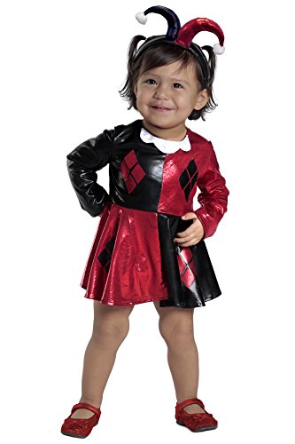映画「バットマン」シリーズより、ハーレイクインの子ども用コスチューム。ワンピース、おむつカバー、カチューシャのセットです