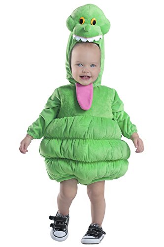 映画「ゴーストバスターズ」より、スライマーの赤ちゃん用コスチューム。ロンパースと顔出しキャップのセット。股下がボタン留なのでトイレやおむつ替えもラクラク