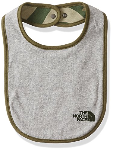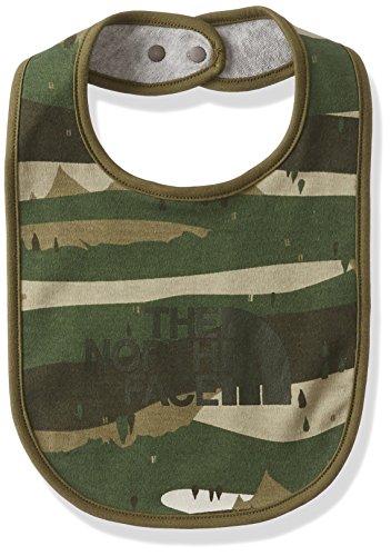 リバーシブル仕様のスタイ。アウトドアをモチーフにした柄のプリント面は、コットンとポリエステルの混紡生地を使用し、肌触りがよく、速乾性にも優れています。THE NORTH FACEのロゴをあしらった無地面は、吸水性のよいパイル地。首のドットボタンでサイズ調節が可能です。