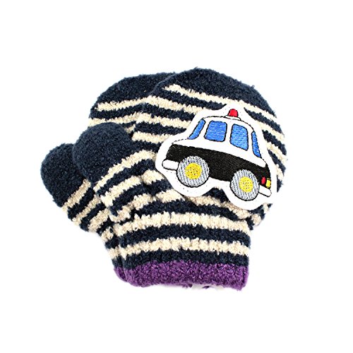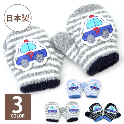 日本製 のりもの 笛入り パトカー ワッペン付き キッズ ミトン 手袋 ネイビー