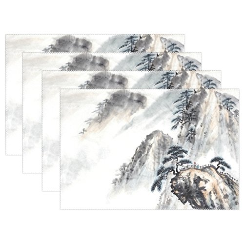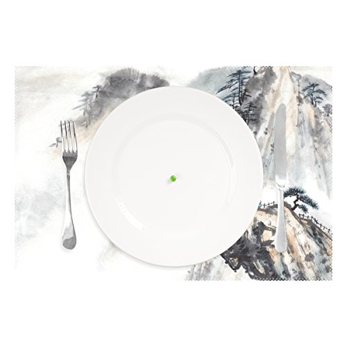 thunanaプレースマット、中国絵画夕食マット、耐熱、crinkle-proofプレースマット set of 6