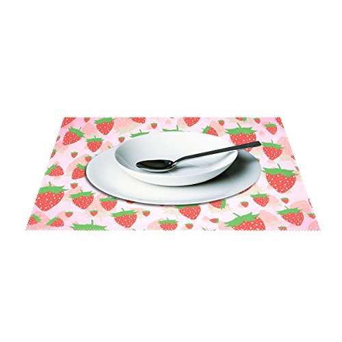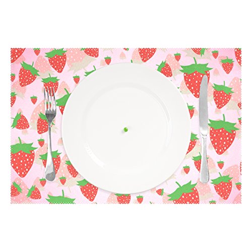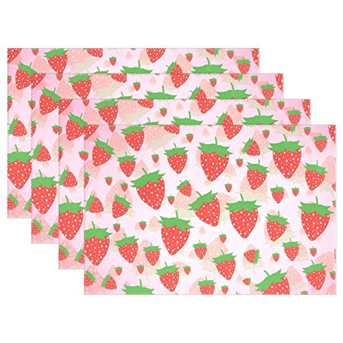 thunana、プレースマットStrawberryシームレスなディナーマット、耐熱、crinkle-proofプレースマット set of 4