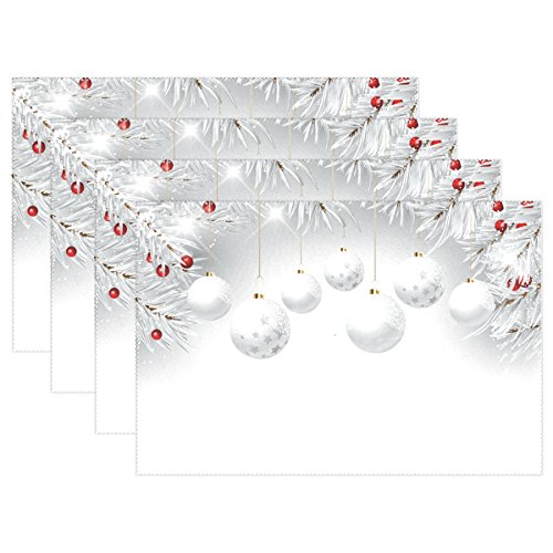 thunana、プレースマットSilvery Chrismas Ballsディナーマット、耐熱、crinkle-proofプレースマット set of 4