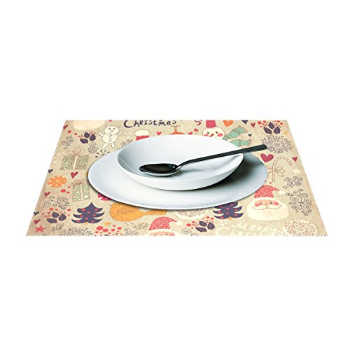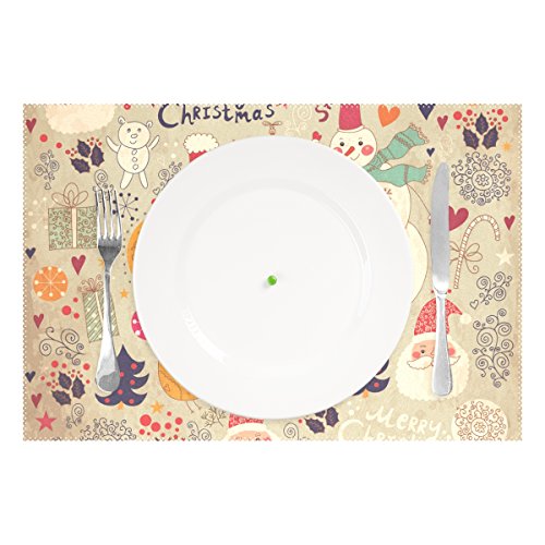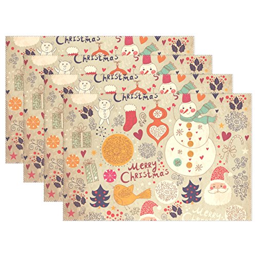 thunana、プレースマットChrismas雪だるまサンタクロースLovelyパターンディナーマット、耐熱、crinkle-proofプレースマット set of 4