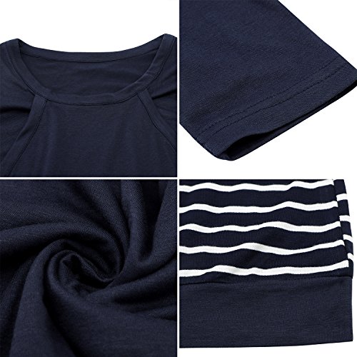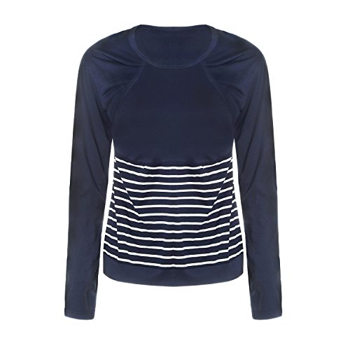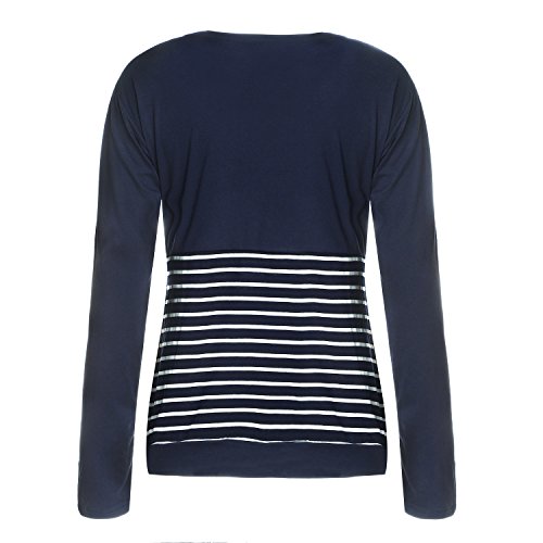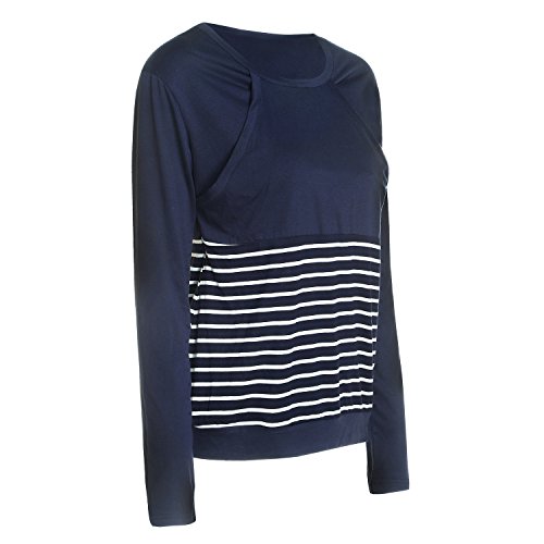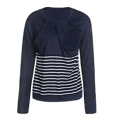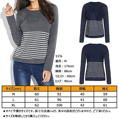TINHAO マタニティ 授乳服 トップス 授乳口付き Tシャツ 縞柄 長袖 春秋 産前産後 ネイビー/XL