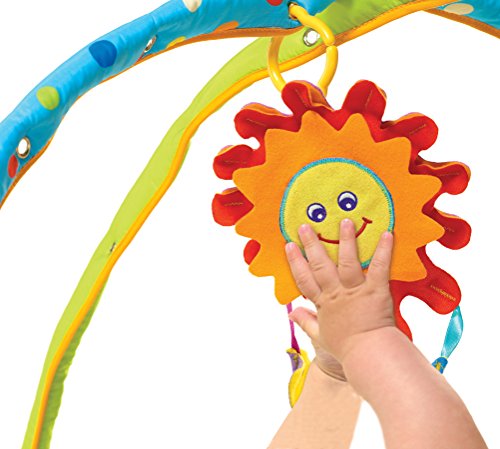 楽しいぶら下げおもちゃ、アクティビティマット、遊び心のある3曲のサウンドが入った太陽がついた、ジミニーサニーデイは赤ちゃんの成長を応援し、赤ちゃんが仰向けでもうつぶせでも好奇心を惹きつけます。 また、おもちゃのアーチの効果は赤ちゃんを落ち着かせます。アーチの交差はクローズドなスペースと落ち着いたスペースを提供します。カラフルなおもちゃは、赤ちゃんの目の前にぶら下がれば視界が刺激されます。