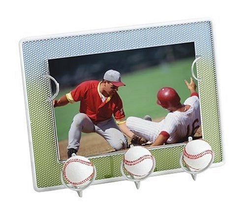 Russ Berrie Sports Page Baseball Picture Frame;Approximately 7L x 9H;Easel back;Hook for wall hanging;Landscape orientation