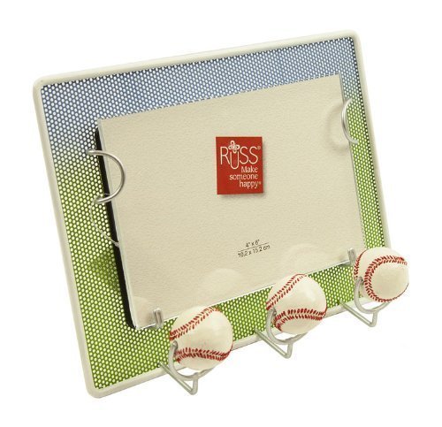 Russ Berrie Sports Page Baseball Picture Frame, Approximately 7"L x 9"H, Easel back, Hook for wall hanging, Landscape orientation