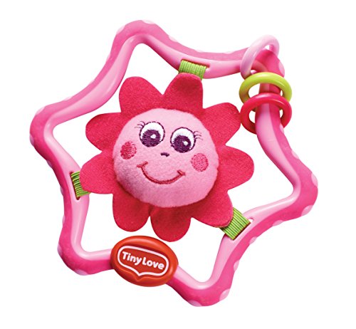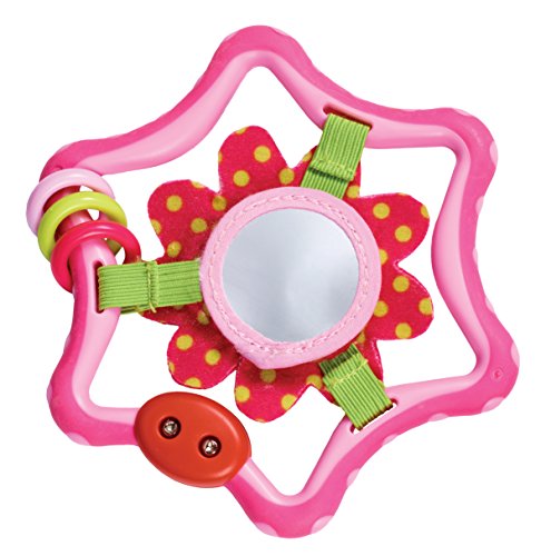 Easy to grasp teether and rattle;Double-sided, featuring mirror and smiling expression;Especially easy for young babies to grab and hold