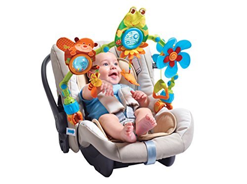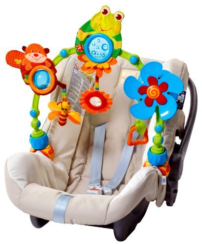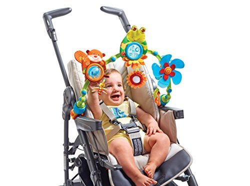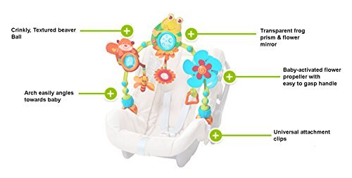 Like the popular Sunny Stroll, the My Nature Pals Stroll is an essential for the busy baby-on-the go. They will love the crinkly frog, baby activated propeller, flower mirror and easy-to-grasp teether handle. The arch easily angles backwards or towards the baby, so it can be set to baby's individual reach. Parents will love the easy on universal attachment clips.