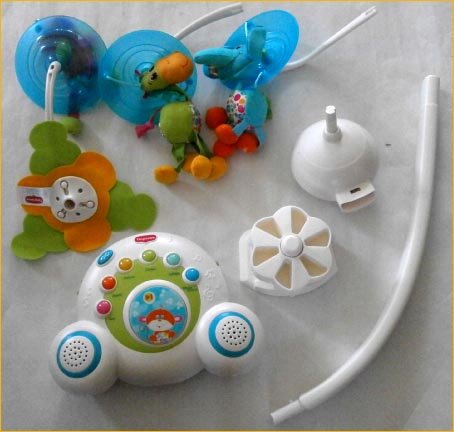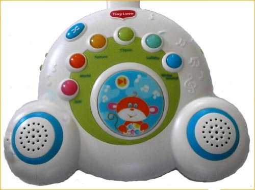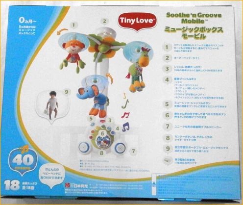 色がきれいで大胆で可愛くてと、今大人気のブランド=タイニーラブ=のモビールが出来ました 【これだけ優れている。特徴説明】 1、目の前でクルクル動く動物に目追いをして視覚認識に役立つ。認識しやすいようにはっきりした色を使っています。 軸を中心にクルクル回るだけでなく、花びらの中で動物さん自体も動くので、立体的な動きが楽しめます。 2、同時に音楽が流れ、音感の育成のも役立つ。小さな時から音楽に接するのはとっても大切な事なんですよ!!。 音楽に早いうちから接しているかいないかで、大きくなってから差が出てきます。 3、18曲40分もの曲が入っていますので、たっぷり音を楽しめるし。ママも手が離せて楽ですね 4、18曲が6つのジャンル3曲ずつに分かれているので(クラッシック ジャズ 子守唄等々)知らず知らずのうちに好みの分野を認識します。 5、ほとんどのベビーベッドに取り付けられるので便利。今までのように上から吊り下げる必要はありません。 6、取り付けしきですので赤ちゃんに見やすい位置に容易にセットできる 7、中央のボールは優しく光り、スピカーも両サイドについているダブルスピカーですので音質も良好。 8、本体のみを取り外し持ち運びが出来ますので、大きくなったら自分専用のミュージックボックスとしても使えます。 9、曲をスキップさせたりシャッフルさせたりする機能ボタンが付いていますので、自分の好みに合わせて編集できます。 自分で考えて音楽を操作編集する能力を知らず知らずのうちに学べます。 出産祝いやギフトにもどうぞ