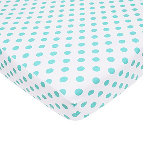 TL Care 100% Cotton Percale Fitted Crib Sheet, White with Aqua Dot by TL Care