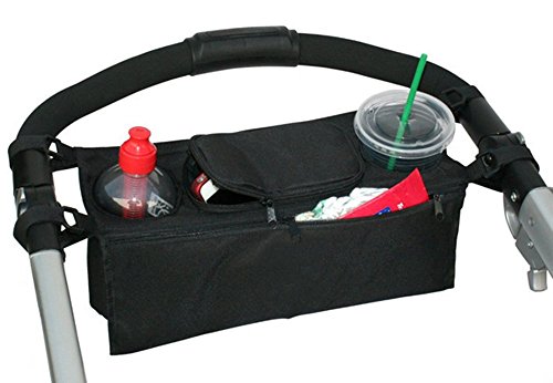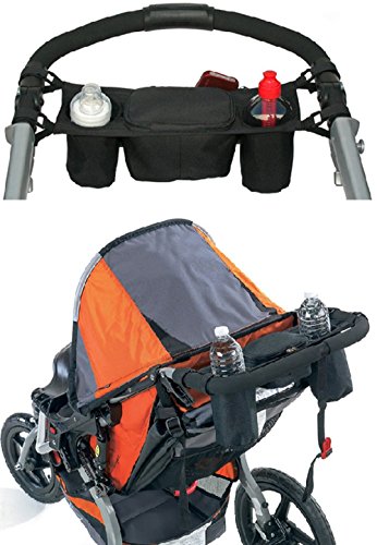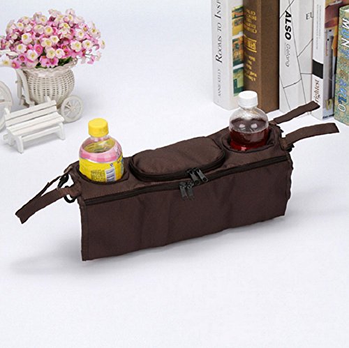 ボトルホルダー トレー ベビーカー用 多機能 小物入れ ポケット ドリンクホルダー ボトル ジャグ 弁当箱 水筒 お菓子 携帯などの小物を収納 ポーチ バッグ ぶら下げ バギー 整理 簡単取付 お出かけベビーカー用ポーチ (ブラウン)