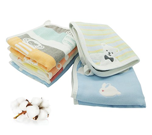 TMVOK 赤ちゃん バス タオル ベビー用 沐浴 吸水速乾 かわいい動物柄 綿100% 6層ガーゼ 6枚セット ハンカチ 柔らかい 保育園 よだれかけ 出産祝い ベビービブ 男の子 女の子