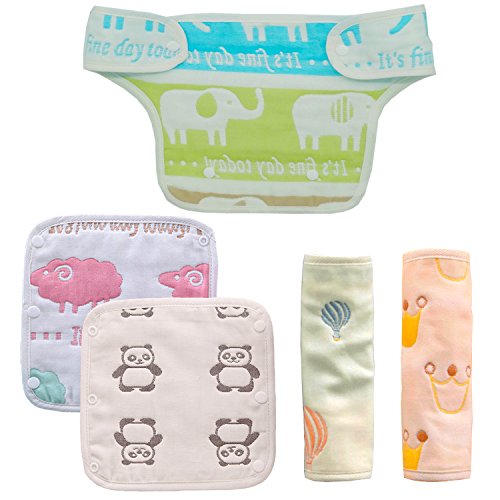 TMVOK 抱っこひも用よだれカバー 綿100% 胸当てよだれカバー 8重ガーゼ ベビーカーフロントバー用よだれパッド よだれパッド 胸あて 胸カバー 5枚セット ベビーキャリア 子守帯用よだれパッド 吸湿速乾ガーゼ 細菌防止 ベビーギフト 出産祝い
