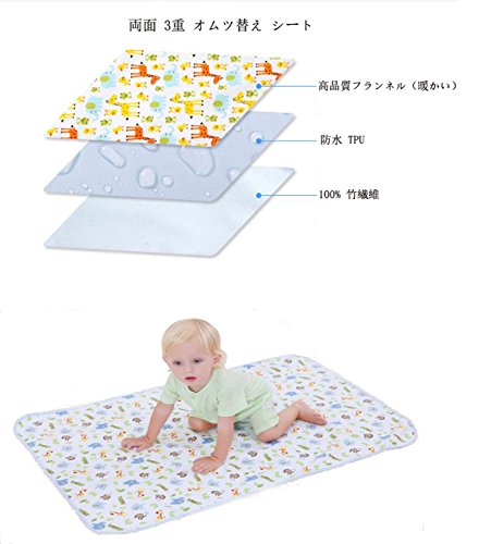 TMVOK おむつ替えシート かわいい 動物のプリント 赤ちゃんにやさしい安心 おむつ取替えマット 携帯用防水吸水 マット 2枚 50*70cm