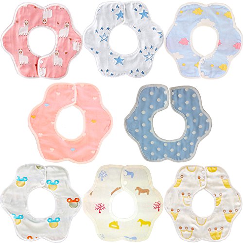 TMVOK よだれかけ ベビー ビブ スタイ 出産祝い 360度回転 新生児 調整可能 6重ガーゼ 8枚セット かわいい動物 男の子 女の子 赤ちゃん エプロン お 食事 エプロン 100%綿製 ユニセックス
