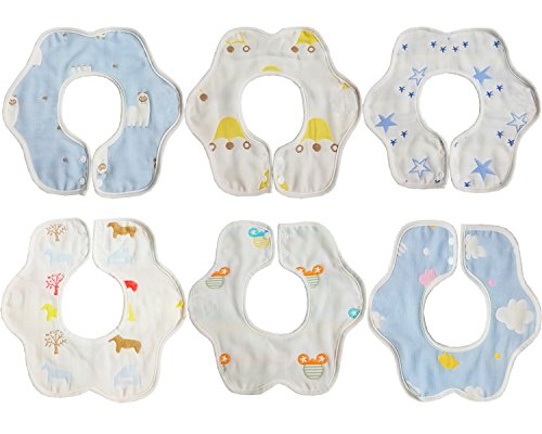 TMVOK よだれかけ スタイ 出産祝い 360度回転 調整可能 6重 6枚セット かわいい動物 男の子 女の子 ベビー ビブ ガーゼ 赤ちゃん エプロン お 食事 エプロン 100%綿製 ユニセックス