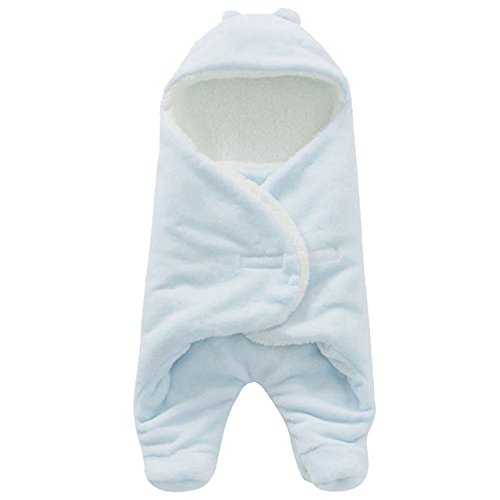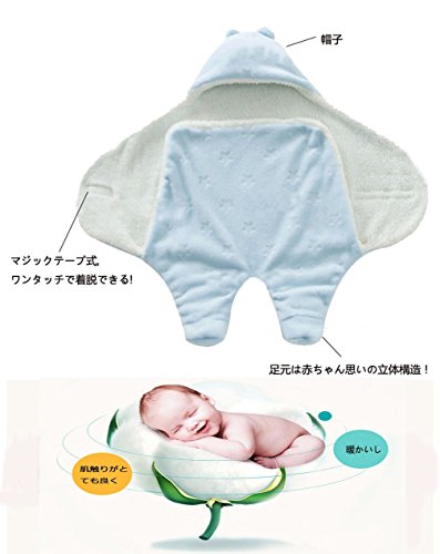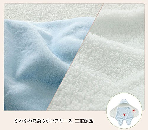 おくるみ 新生児 秋冬 赤ちゃん, TMVOK あったか おくるみ 柔らかい 出産祝い かわいい ベビー用スリーパー (無料ギフト: よだれかけ6重) (ブルー)