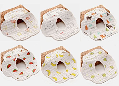 TMVOK よだれかけ スタイ出産祝い ベビー ビブ 8重ガーゼ 360度回転 新生児 調整可能 6枚セット かわいい動物 男の子 女の子 赤ちゃん エプロン 食事用 スタイ100%綿製 ユニセックス(28*29cm 大きなサイズ)