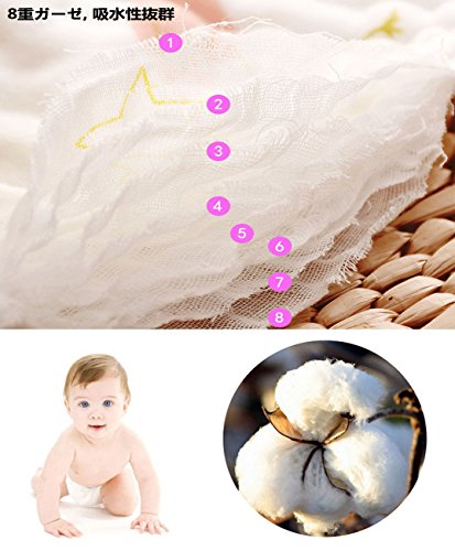 - ❥素材: 8重ガーゼ、綿100%の天然素材で作られ, 吸水性抜群, 赤ちゃんの繊細なお肌を守り