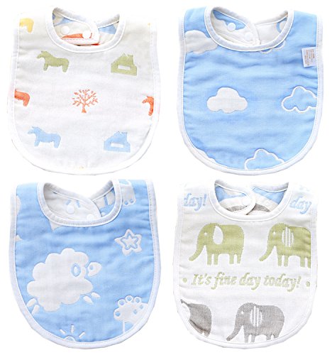 TMVOK スタイ よだれかけ 出産祝い 6重 4枚セット お 食事 エプロン ベビー ビブ 新生児 調整可能 かわいい動物 男の子 女の子 赤ちゃん 100%綿製 ユニセックス