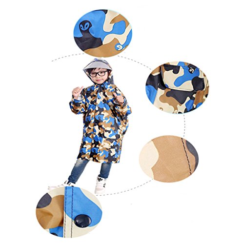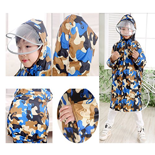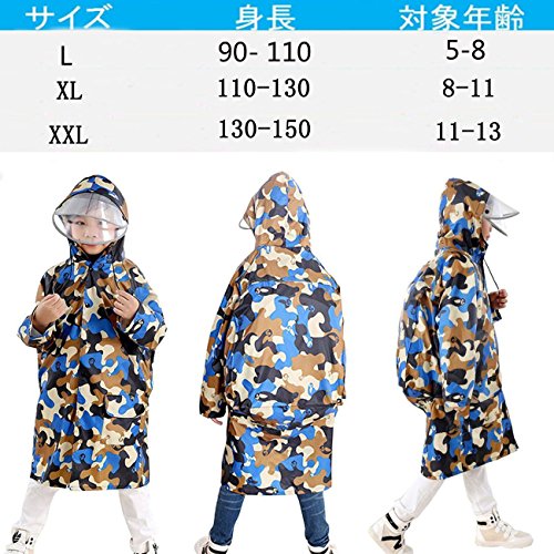 TMVOK レインコートレインウェア子供用 通園 通学 キッズ ガールズ ボーイズ 雨合羽 傘 男の子 女の子 小学生 キッズ 雨具 ランドセル対応 迷彩 (L(90-110cm), 青色迷彩)