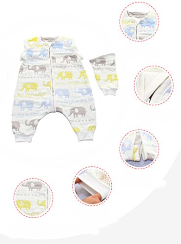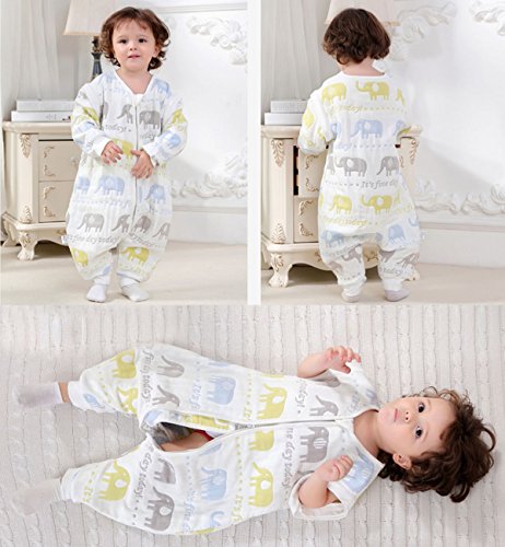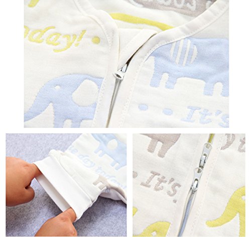 TMVOK スリーパー長袖 冬 ベビー 赤ちゃん 6重 ガーゼ 袖外せる 2way ,ガーゼ スリーパー 柔らか かわいい動物 出産祝い 寝具 绵 (M(身長:75-85cm), 象柄)