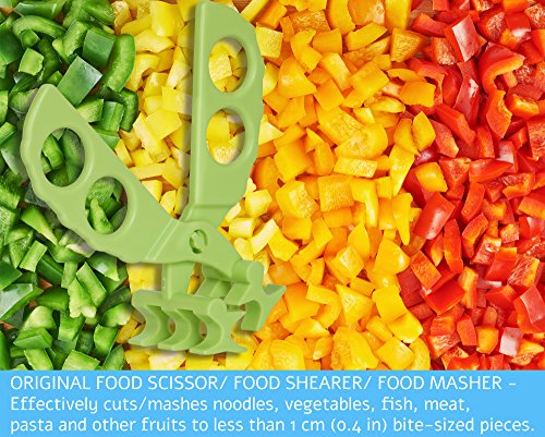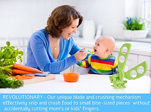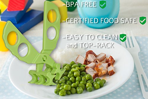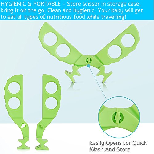 REVOLUTIONARY- effectively snip and crush food to small bite-sized pieces (incl. hard uncooked foods i.e. carrots) without accidentally cutting mom's or kids' fingers.;ORIGINAL FOOD SCISSOR/ FOOD SHEARER/ FOOD MASHER - Effectively cuts/mashes noodles, vegetables, fish, meat, pasta and other fruits to less than 1 cm (0.4 in) bite-sized pieces.;SAFE TO USE - Never worry about having a sharp scissor on your dining table. Completely hazard-free. Older children (>5years old) are also encouraged to cut their own food/ help their younger siblings.;HYGIENIC & PORTABLE - Store scissor in storage case, bring it on the go. Clean and hygienic. Your baby will get to eat all types of nutritious food while travelling!;BPA FREE, CERTIFIED FOOD SAFE, EASY TO CLEAN and TOP-RACK DISHWASHER SAFE