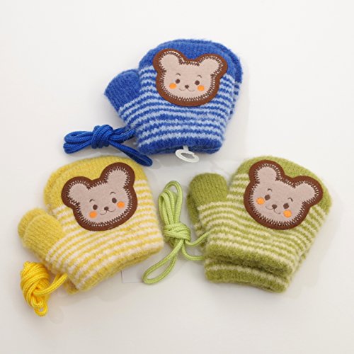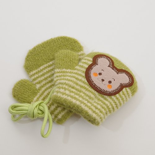 日本製 ひも付き手袋 のびのびミトンタイプ 10cm クマ (1610-1737) (グリーン)