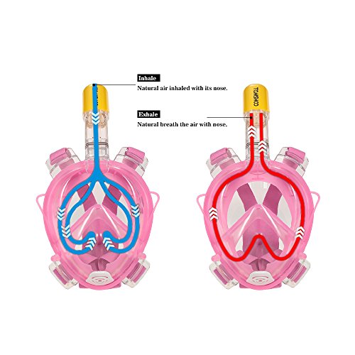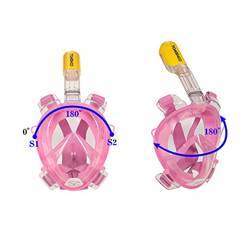 TOMSHOO フルフェイス型 シュノーケルマスク ダイビングマスク180°のワイドビュー 曇り止め 男女兼用 口も鼻も呼吸できる 一体成型