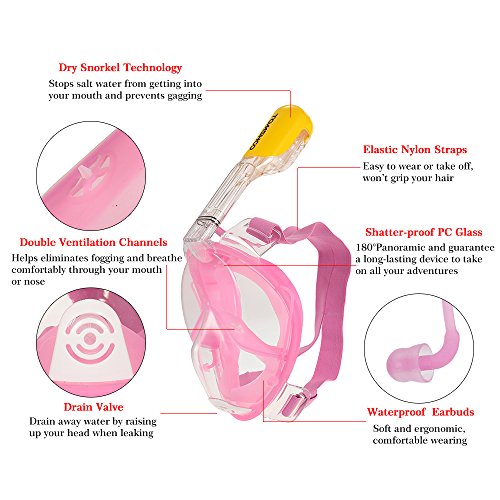- シュノーケル技術。フルフェイスマスクはシュノーケルのマウスピースをくわえる必要がないので、泳いでる最中によくあったマウスピースを噛み過ぎで顎が痛いという現象ともさよならできます。
