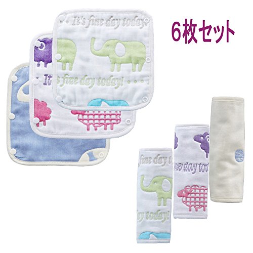 【6枚入り】 抱っこひも用よだれパッド ベビーカーに チャイルドシートに 綿100% 8重ガーゼ 優れた吸水性 雑菌予防 付け替え簡単