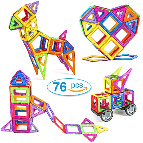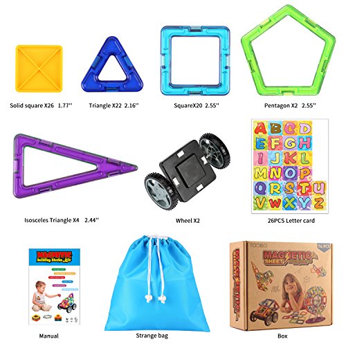 TOQIBO 磁石 知育玩具 積み木 子供おもちゃ 知育学習玩具 想像力創造力を育てる 赤ちゃん DIY 知育おもちゃ キッズ 磁石 パズル ブロック プレゼント ギフト(76ピース 収納ボックス付き) …